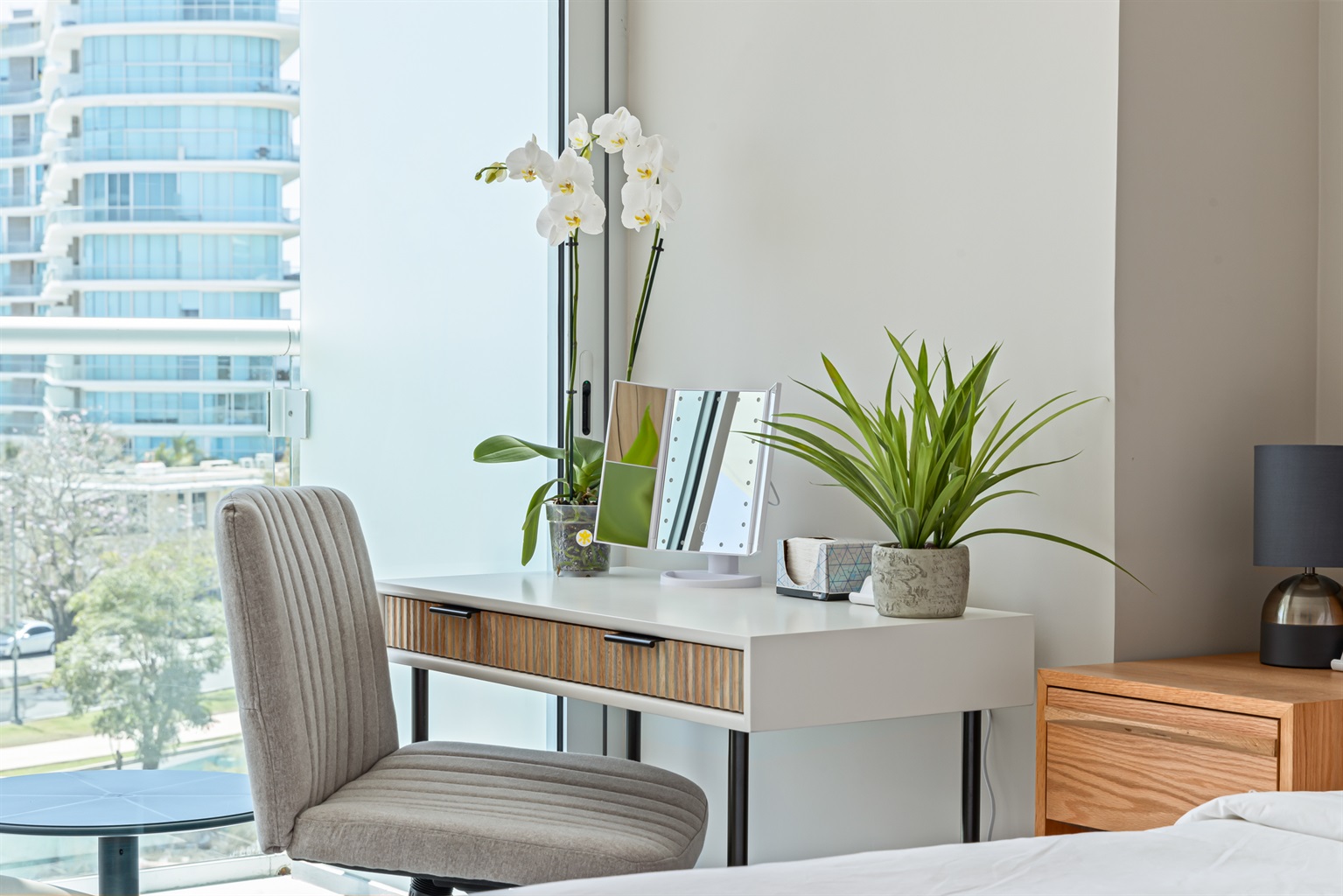 - Three bedrooms (2 king beds, 1 queen bed) with smart TVs & workstations